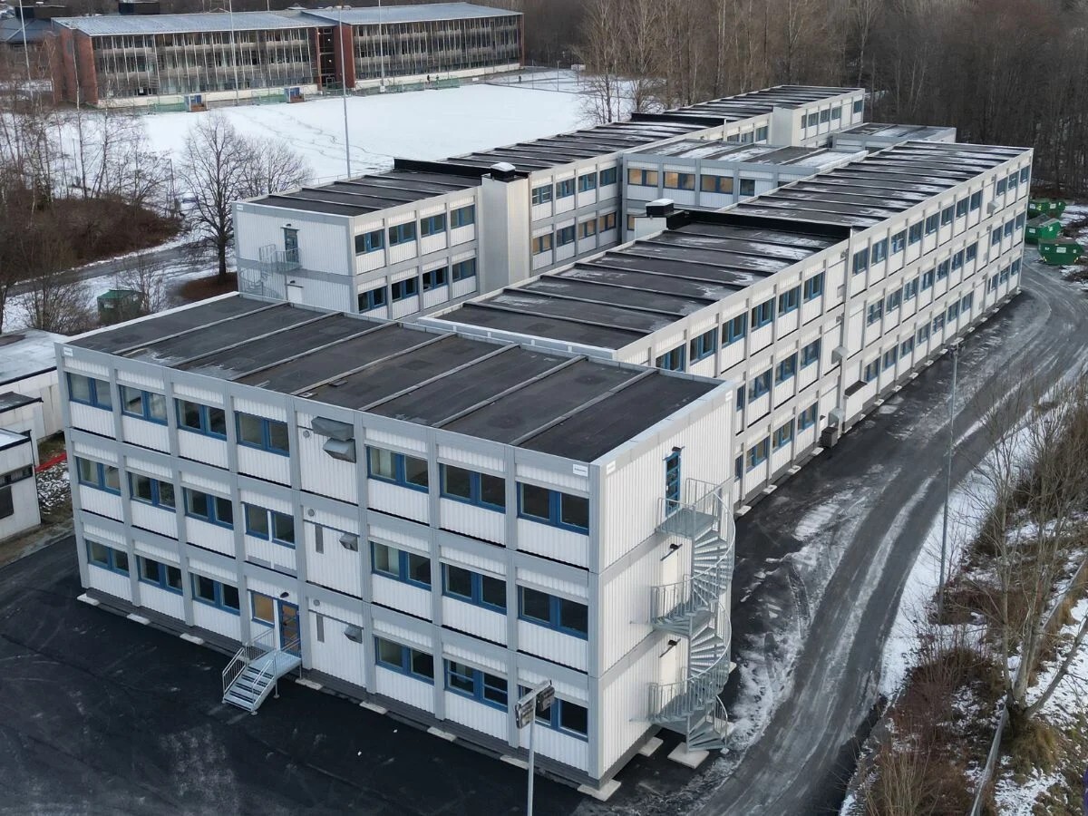 - In Noorwegen leverden we een school van drie verdiepingen en 5.200 m² op. Dit complexe, multifunctionele gebouw werd in slechts drie maanden tijd gerealiseerd dankzij strakke logistieke coördinatie, waardoor de lessen tijdens een grote campusrenovatie ononderbroken konden doorgaan.